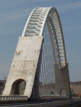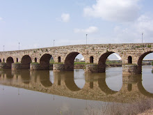 Puente sobre el Albarregas. Realizado en la misma época que el del Guadiana, este pequeño puente mide 145 metros de longitud y unos 7,00 m. de ancho. Situado en la Vía de la plata, es la continuación del Kardo Maximus de la ciudad y en las proximidades del acueducto de los milagros. Posee cuatro arcos de medio punto -de 5,30 m. de luz- y dos vanos adintelados de desagüe en un lateral. Destacaremos el aspecto macizo de toda la construcción, es especial de las pilas, que carecen de tajamares. También es de resaltar la posición oblicua sobre el cauce del río, lo que implica una mayor fuerza sobre las pilas. Esto puede ser debido a el escaso caudal, o la variación natural del su curso.