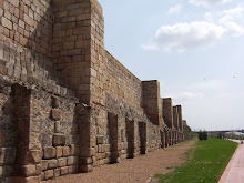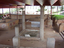Domus de la Huerta de Otero. Otra típica casa romana con peristilum a dos niveles como elemento de distribución. Además de este patio nos quedan restos de los pasillos con mosaicos y paredes con pinturas. Tenía una gran zona termal privada distribuida en dos pisos.